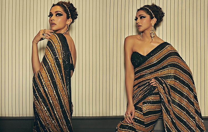 Very clearly stated by Sabyasachi Mukherjee himself that saree is not just a fashion piece for him but a story to be told. And the sarees by the designer not only create a buzz in the fashion world but also on social media and the celeb world. This time we mention Sabyasachi for ringing a bell at the Cannes Film Festival where we can see Deepika adding to her majestic look in a striped blingy saree.
