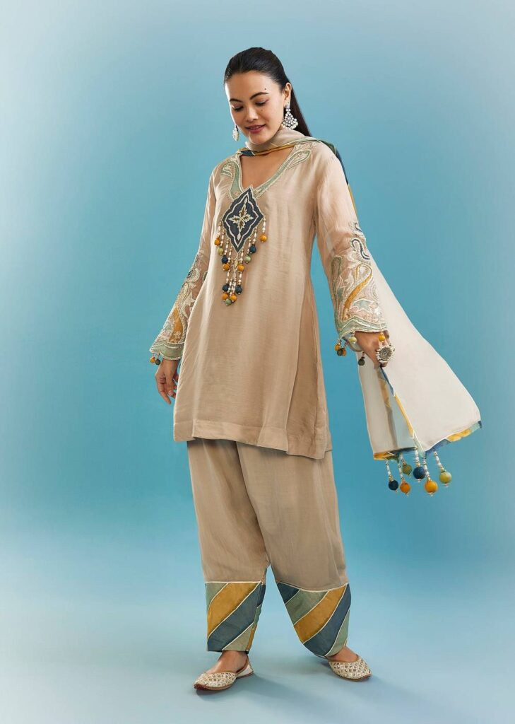 The sheen of fabrics like printed and plain organza and silk blends are bang on for ethnic outfits and very trendy these days.