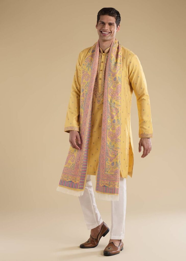 You may be a fan of contemporary fashion, but I’m sure you will agree with the fact that there is an unmatched charm in ethnic fashion that makes you look elegant and graceful. Therefore, on the auspicious occasion of Akshaya Tritiya, opting for ethnic outfits for men and women is the wisest choice. Suits, sarees and lehengas embroidered with gota, mirror work, etc., in gold and yellow colour for women on one hand and printed or embroidered kurta sets for men on the other hand, not only hold cultural importance but also add charm to the celebrations.