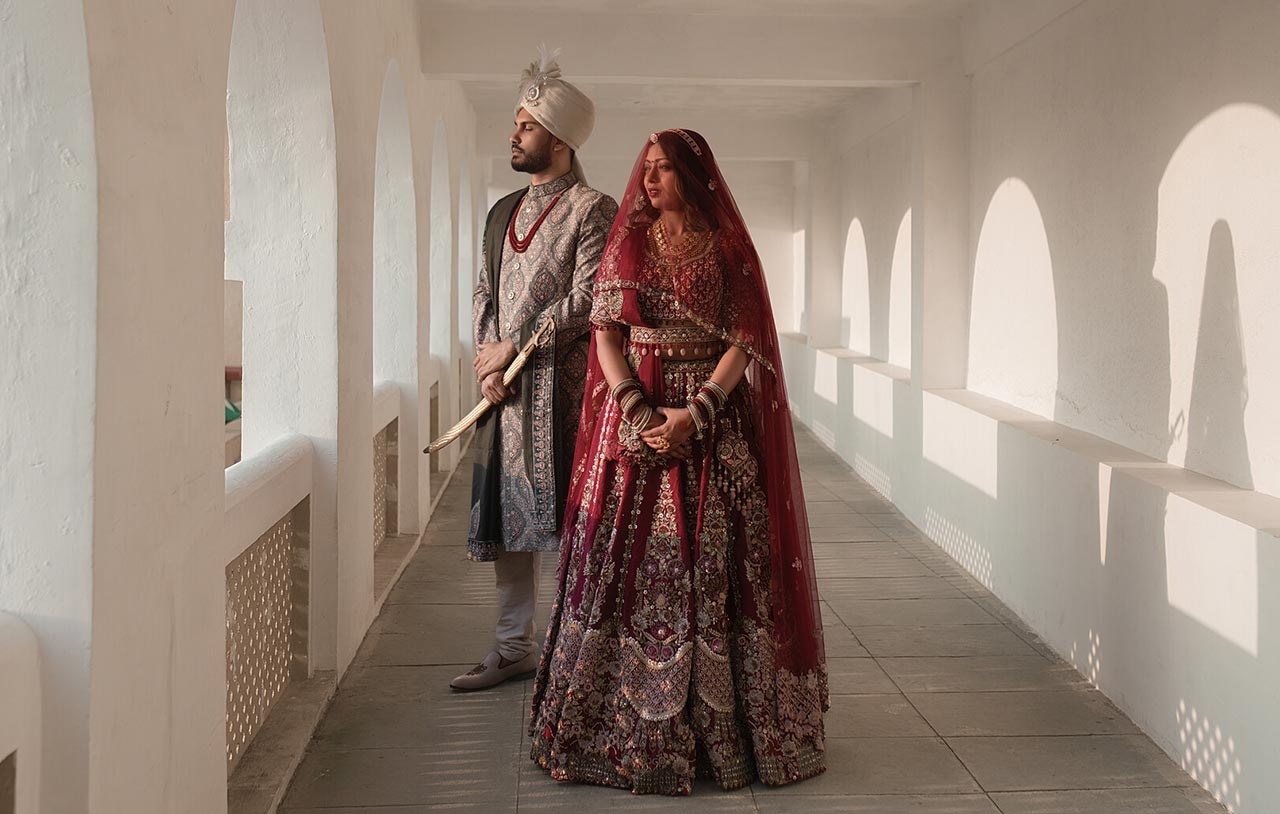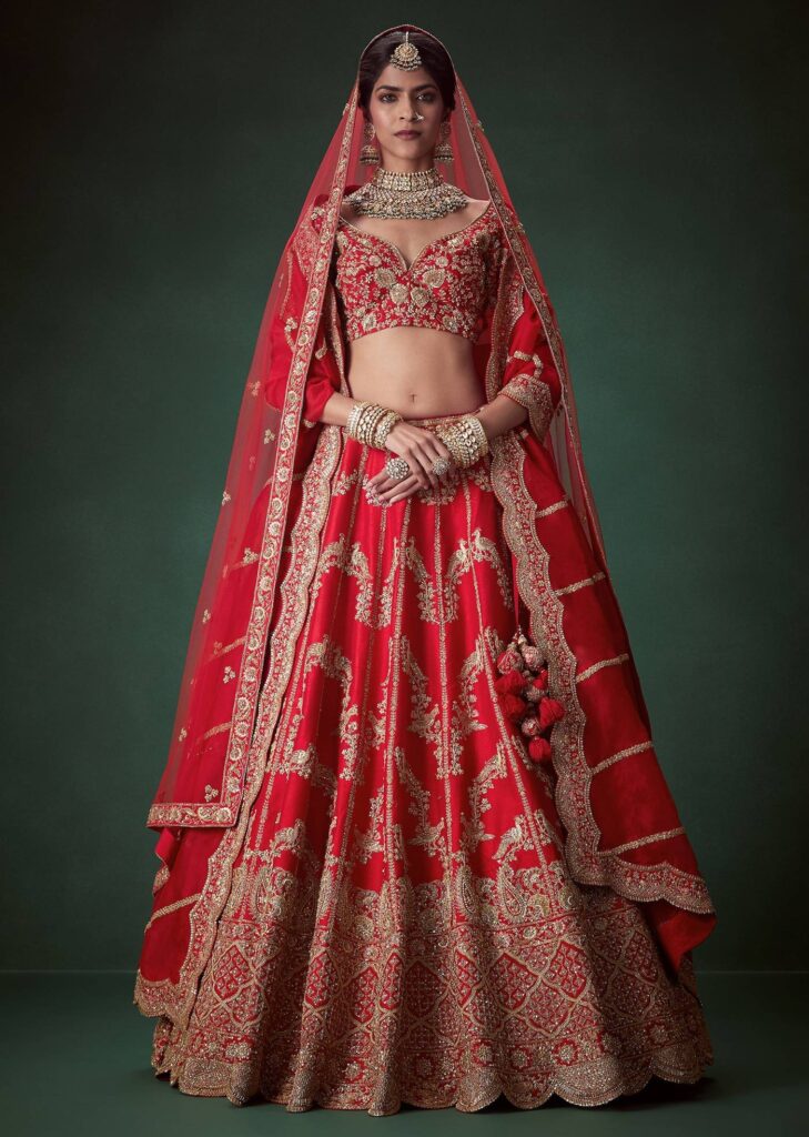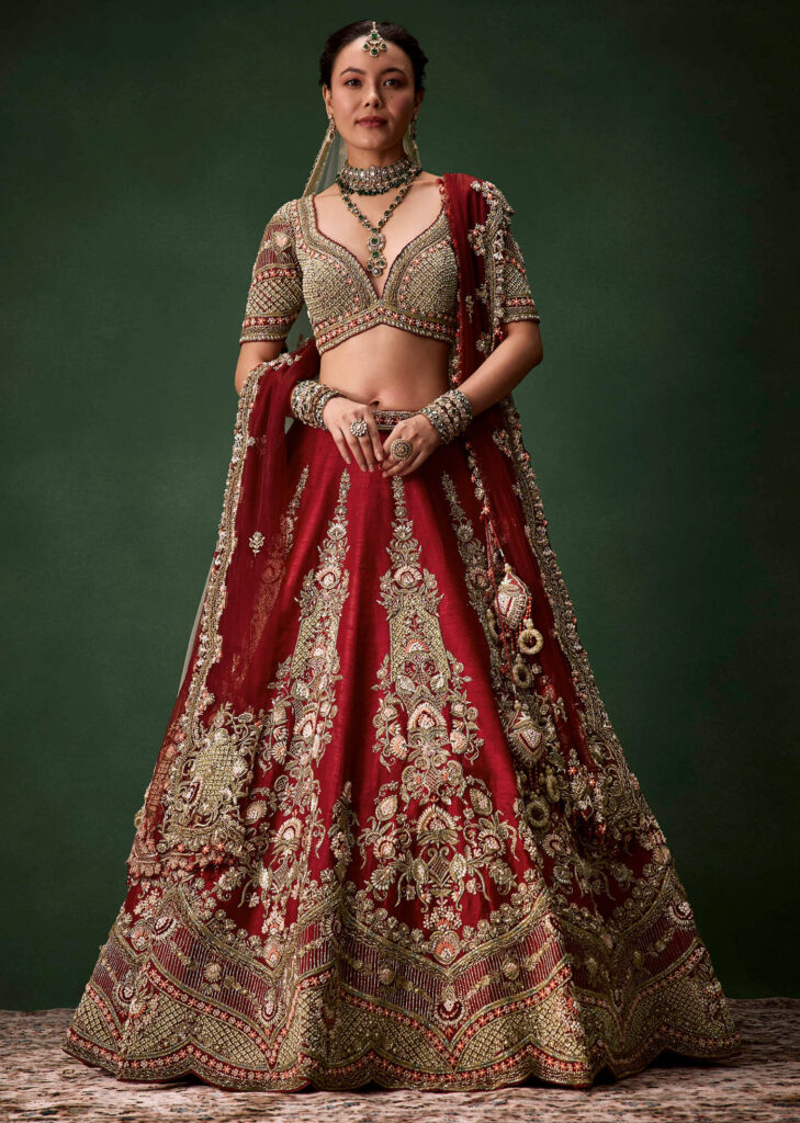 Love Homa’s story and dream of your own bridal lehenga? Find more similar styles at KALKI to match your red lehenga or maroon visions for your destination wedding: