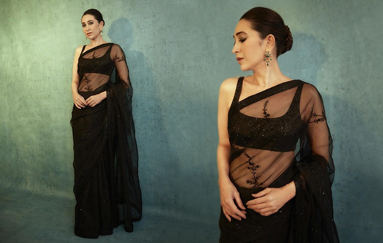Well, Sabyasachi saree collections hardly need an intro, but few iconic ones definitely deserve many mentions. Here we go into the details of the dainty and sheer black saree donned by Karishma Kapoor aka Lolo!
