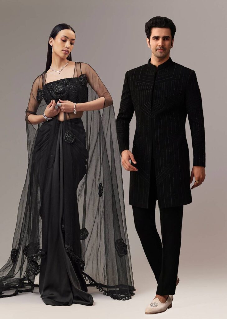 I’m sure you would want a picture-perfect look that would remain memorable forever. Opt for an outfit that complements the bride’s outfit and the theme of the wedding. Go for matching fabrics, colours or embroidery and look like a match made in heaven.