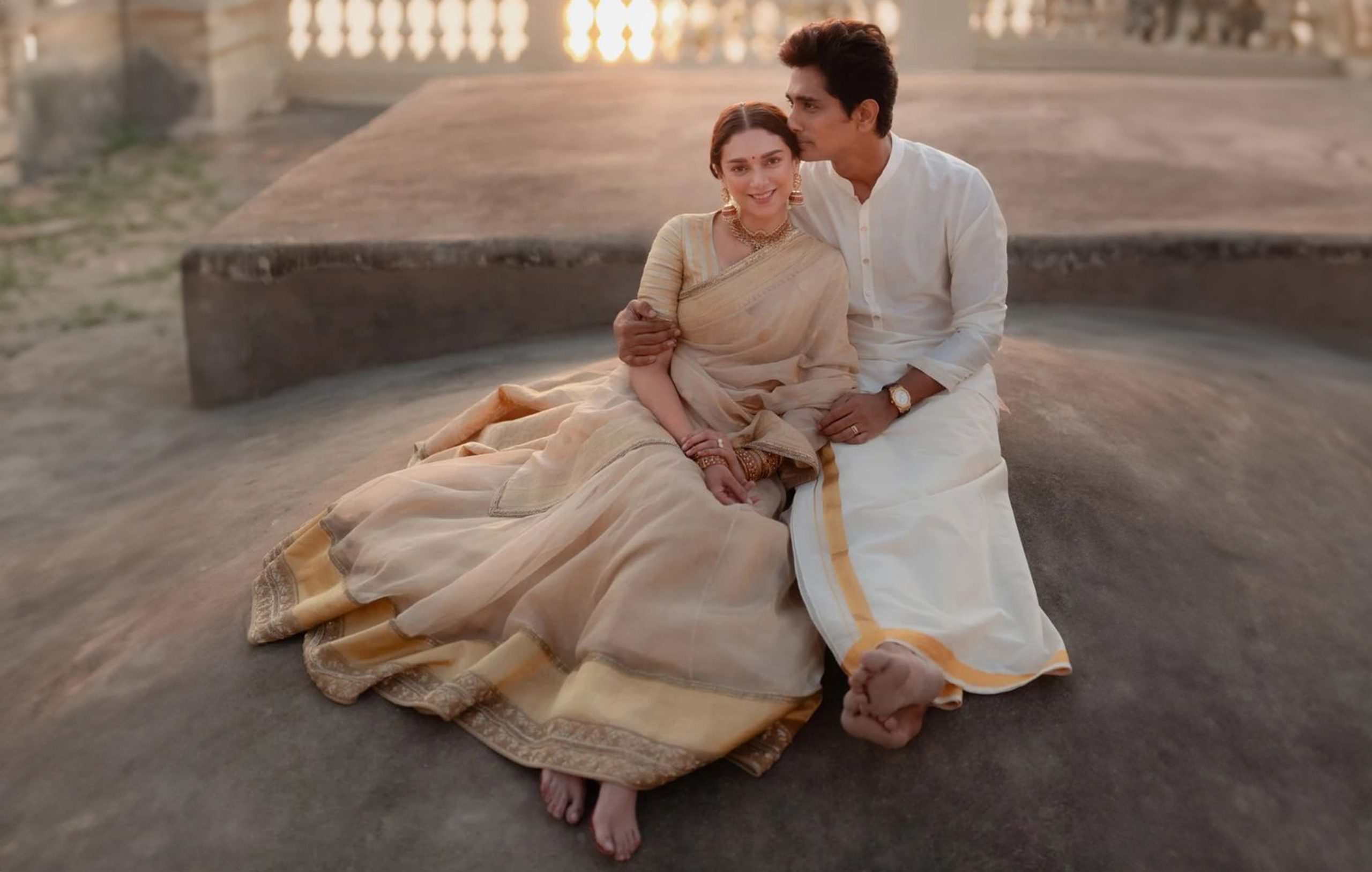 The connection mattered more than the extravagant celebration for the couple. They opted for an intimate temple wedding and a serene and quiet backdrop. They celebrated their union with minimal décor, simple wedding outfits, and a focus on tradition. The wedding of the celeb couple stood out for its simplicity and heartfelt moments. Aditi Rao Hydari surprised the fans with breathtaking pictures on her Instagram handle and a beautiful caption that read- Mrs & Mr Adu-Siddhu.