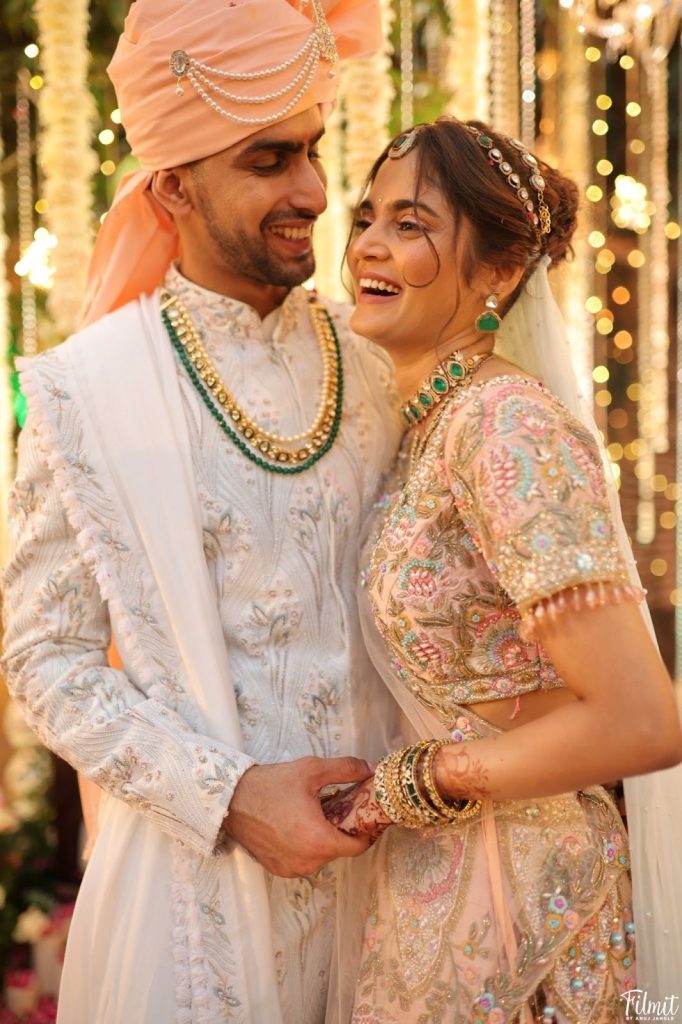 “The lehenga itself gave me the idea for my wedding theme, a fairytale wedding with pastel colours, lots of flowers, and hints of gold,” she shared. And that’s exactly what she created.