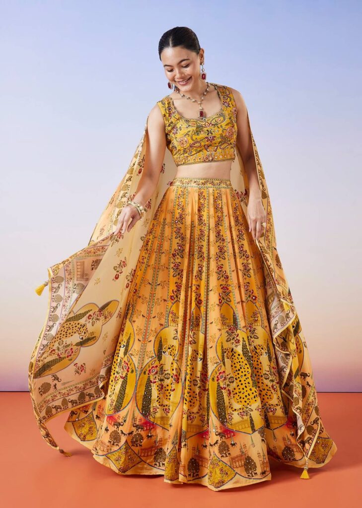 Lehengas: Lightweight lehengas in bright colours that twirl and swirl make you look ravishing and are a great choice for Baisakhi celebrations.