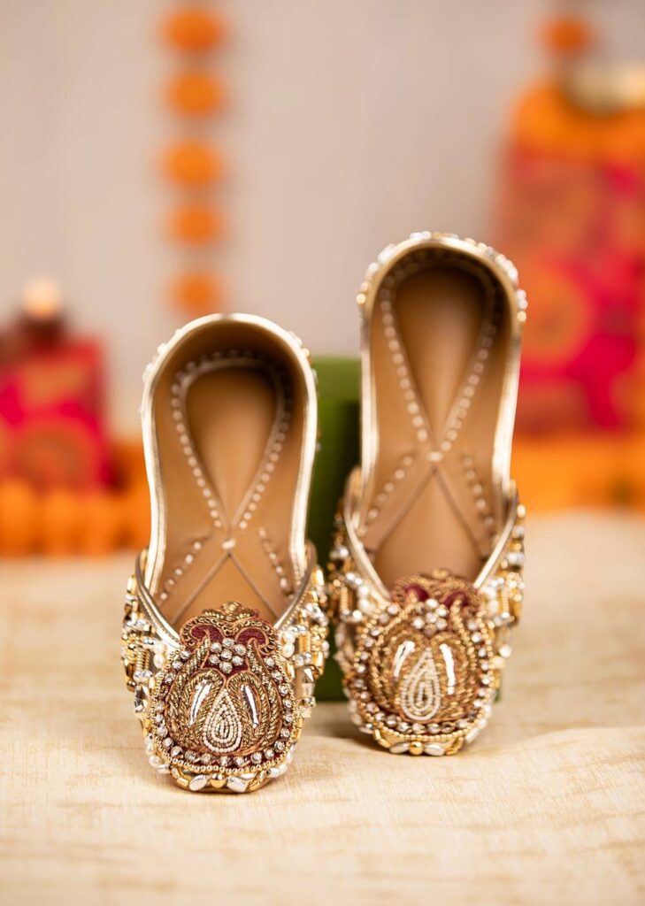 1. Go for Comfortable Footwear: You cannot ignore your footwear during a festival that involves dancing and moving around for long hours. So, not only should your footwear look great, but it should also allow you to dance and celebrate comfortably. Juttis, sandals or wedge heels are comfortable options that complement your Baisakhi dresses.