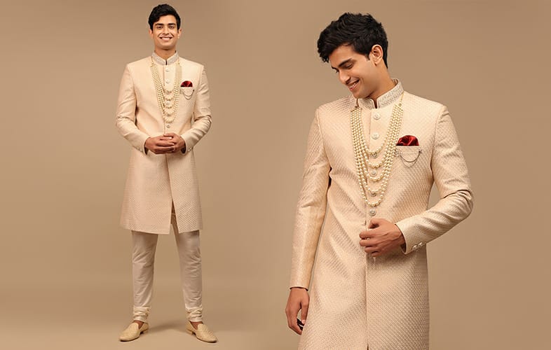 Dear husbands-to-be, sit back, relax and take some inspiration from our impeccably done wedding sherwanis for men! You will absolutely love them as they stand out for their exquisite pattern, stylish look, fusion factor, comfy fabric and more. Get set to complement your bride’s outfit with an equally stunning sherwani.