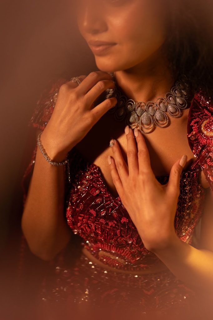 Today’s bride is redefining what bridal wear looks like. She seeks pieces that resonate with her personality, her pace, and her story. This ensemble speaks to that evolution—where tradition meets individuality.
